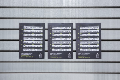 Konzeption einer Informationsskampagne, die sich an Risikogruppen richtet, die regelmäßig Alkohol konsumieren. Ziel ist es, das Bewusstsein für bestehende Problematik zu schärfen. Die Institutionen Le Radeau, Le Torry und Le Tremplin haben sich zusammengetan, um diese Kampagne zu steuern.