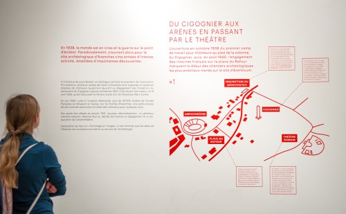 Mandat du Musée d’Avenches pour la scénographie et la réalisation des supports de communications de l’exposition « Chômeurs, soldats et mécènes au service de l’archéologie » à l’Espace Arlaud de Lausanne.