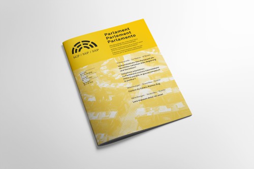 Refonte du logo de la Société suisse pour les questions parlementaires et déclinaison sur les supports de communication.